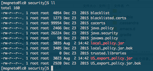 我们需要将 local_policy.jar 和 US_export_policy.jar 两个文件复制到$JAVA_HOME/jre/lib/security