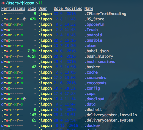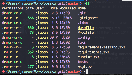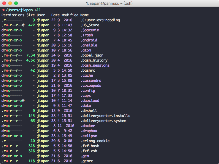 最后再来说下我现在用的 iTerm2 配色,之前一直用的都是自己配的,会遇到文字和背景色不太搭的情况,比如 Date 和 Modified 那两列: