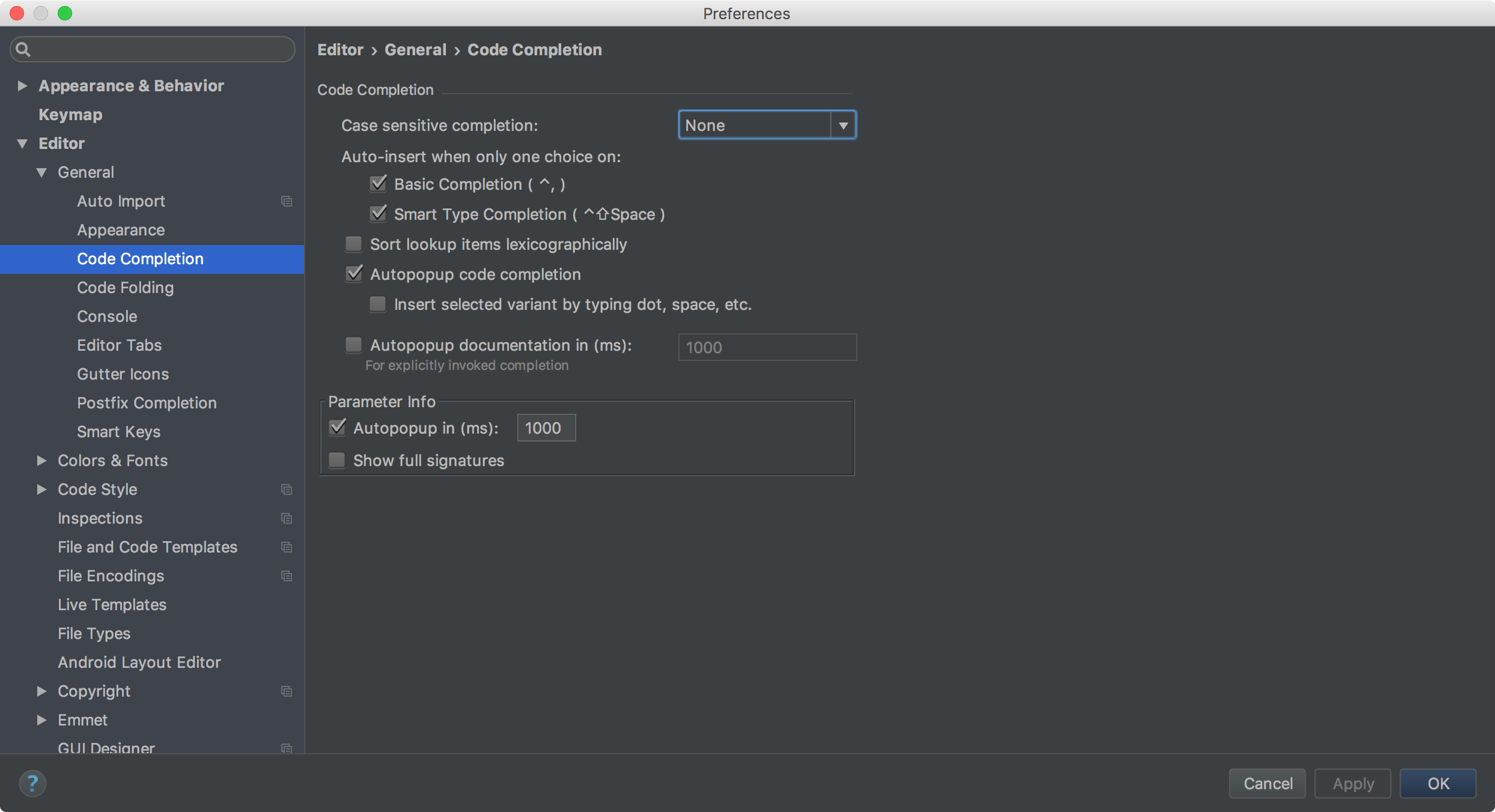 代码补全 (Basic): Control + ,