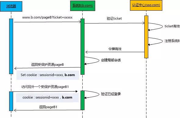 同样,认证中心会返回 ticket,系统B需要做验证。
