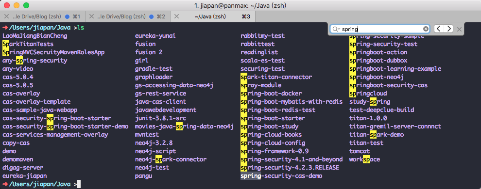 ⌘+d水平切分,⌘+Shift+d垂直切分 - 智能查找,支持正则查找: