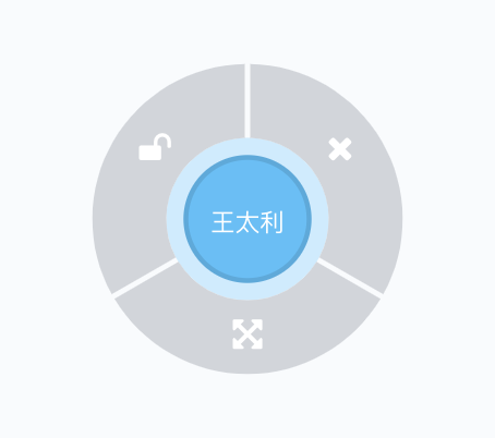 你可能已经注意到,点击一个节点会展开一个分成三部分的外部圆,每个部分有不同的选项: