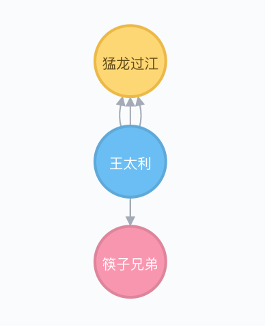 可以看到我们在 MATCH 中使用的模式几乎是不言自明的,它匹配了所有发布过名为 猛龙过江 专辑的乐队。