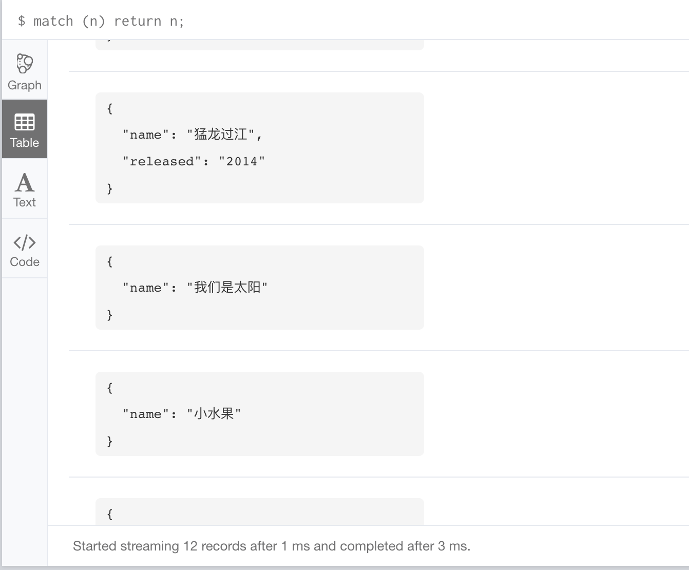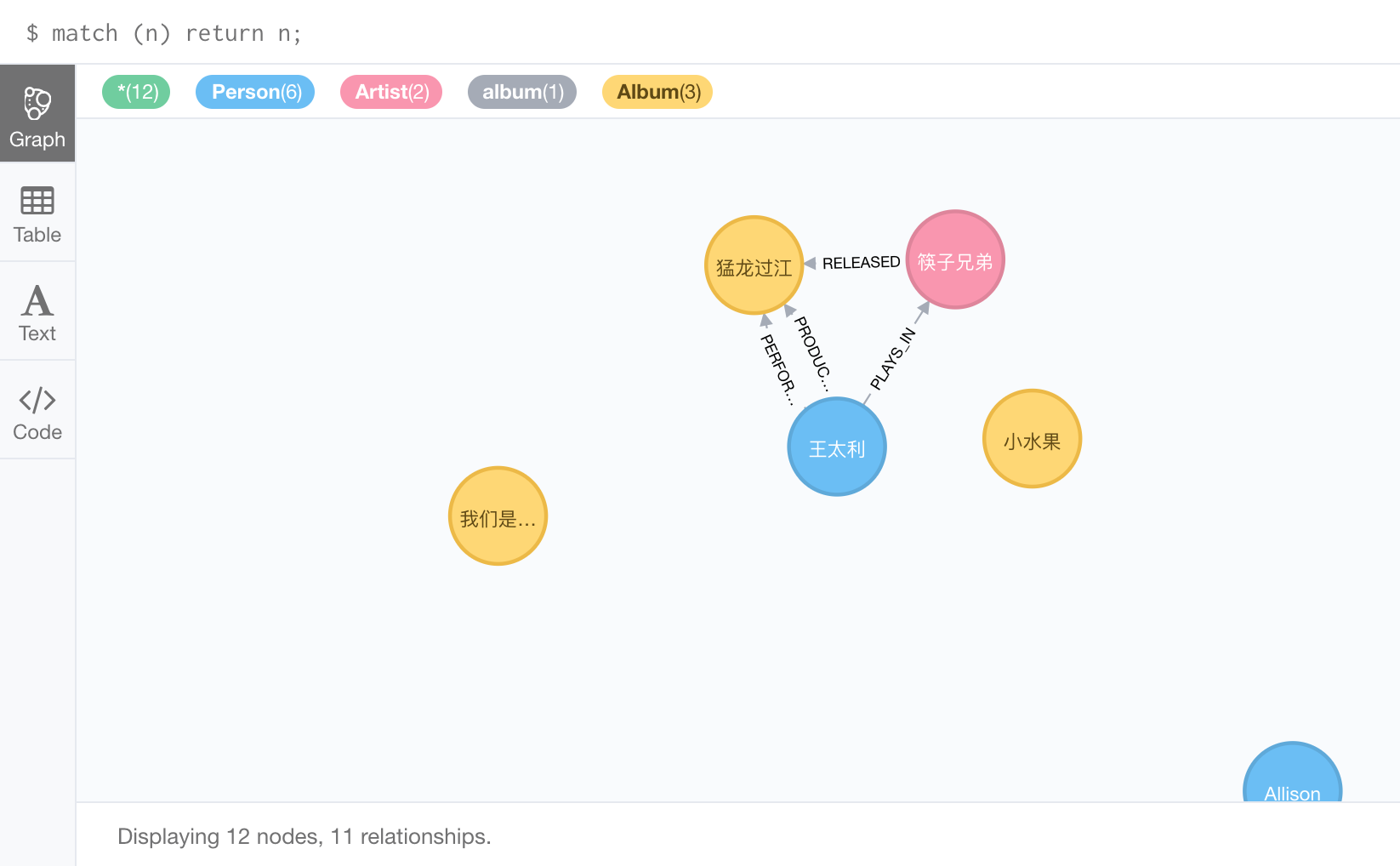 运行上边任意一条查询语句将会看到如下的节点被展示出来: