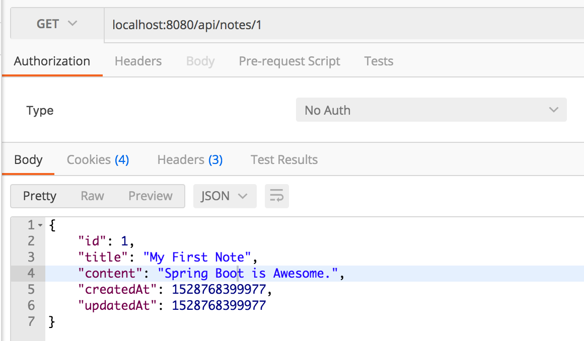 在上面的方法中,只要没找到指定 ID 的笔记,我们就抛出一个 ResourceNotFoundException 异常。