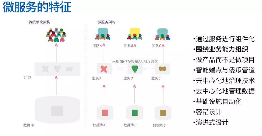 理解了这个法则,我们就可以很容易的明白,已经在单体架构下开发了多年的软件工程师,当被要求要使用微服务架构来进行设计和开发的时候,本能的反应方式肯定是:这不就是把原来的单体做小了吗?但是这样做出来的「微服务」真的能够给我们带来微服务架构的那些好处吗?真的能提高一个企业的数字化响应力吗?