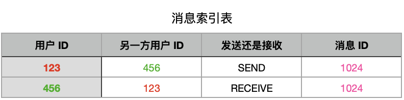 - 消息索引表的使用场景一般用于查询收发双方的历史聊天记录,是聊天会话维度