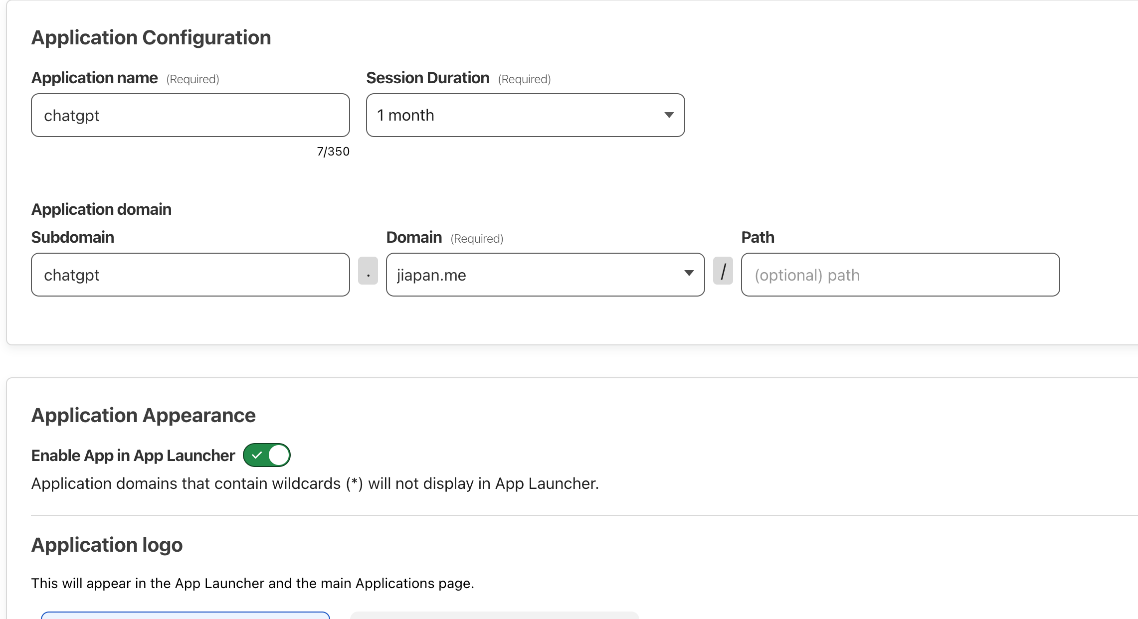 如下图,我配置了一个 chatgpt 服务,要保护的域名是 chatgpt.jiapan.me,认证后过期时间为1个月: