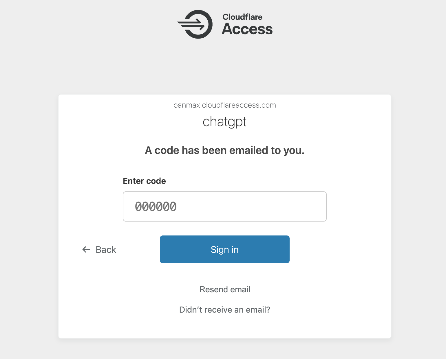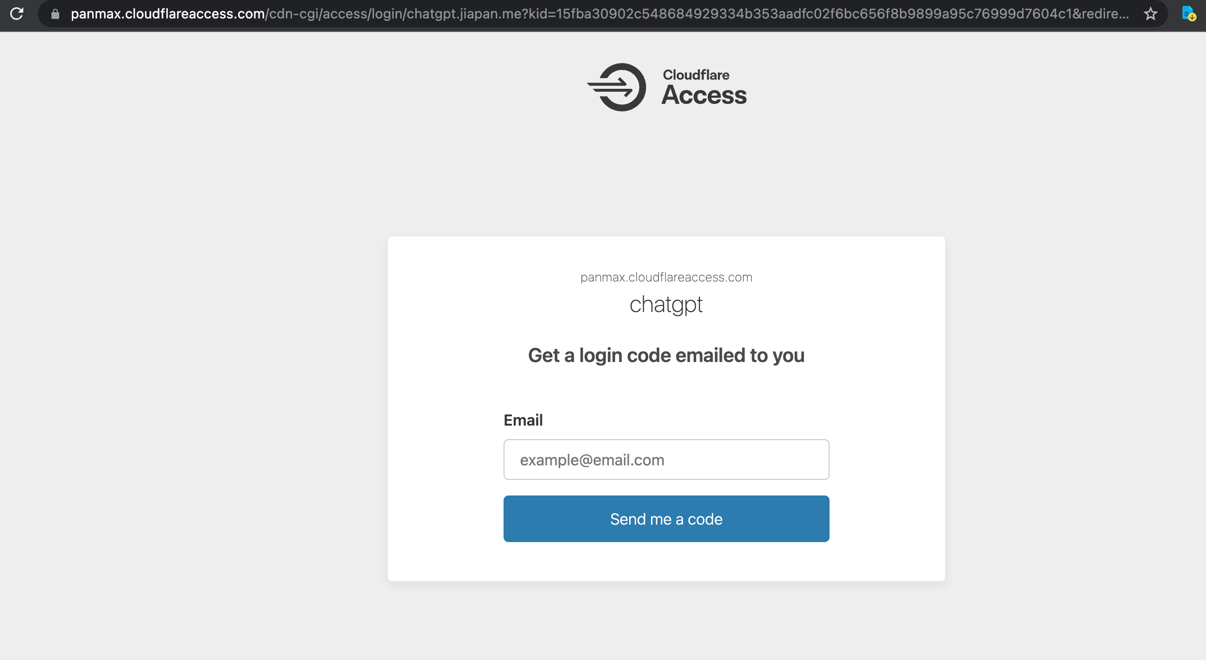 现在当我再打开 https://chatgpt.jiapan.me 时,会被重定向到 Cloudflare 的认证页面。需要输入一个邮箱地址: