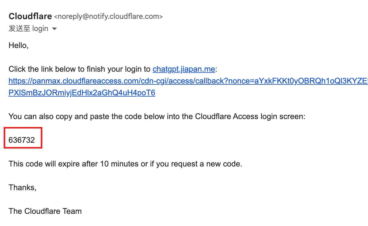 如果输入的不是以 @jiapan.me 结尾的邮箱,也不会报错,会正常进入到输入验证码页面,但实际上收不到验证码邮件。这一步 Cloudflare 做得很好,不会让不法分子破解出具体能用什么样的邮箱可以收到验证码。